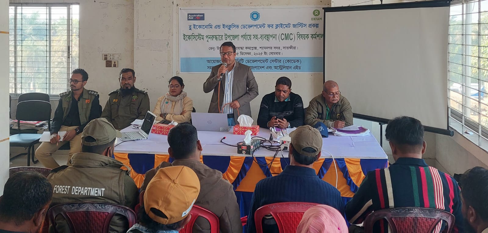 ব্লু ইকোনোমি এন্ড ইনক্লুসিভ ডেভেলপমেন্ট ফর ক্লাইমেট জাস্টিস প্রকল্পের আওতায় ইকো-সিস্টেম পূনরুদ্ধারে উপজেলা পর্যায়ে সহ-ব্যবস্থাপনা বিষয়ক কর্মশালা অনুষ্ঠিত হয়েছে। কমিউনিটি ডেভেলপমেন্ট সেন্টার (কোডেক) এর আয়োজনে ও অক্সফ্যাম ইন বাংলাদেশ এবং অস্ট্রেলিয়ান এইডের সহযোগিতায় সোমবার (১৫ ডিসেম্বর) উপজেলা মুক্তিযোদ্ধা কমপ্লেক্সের মিলনায়তনে কর্মশালাটি অনুষ্ঠিত হয়।
