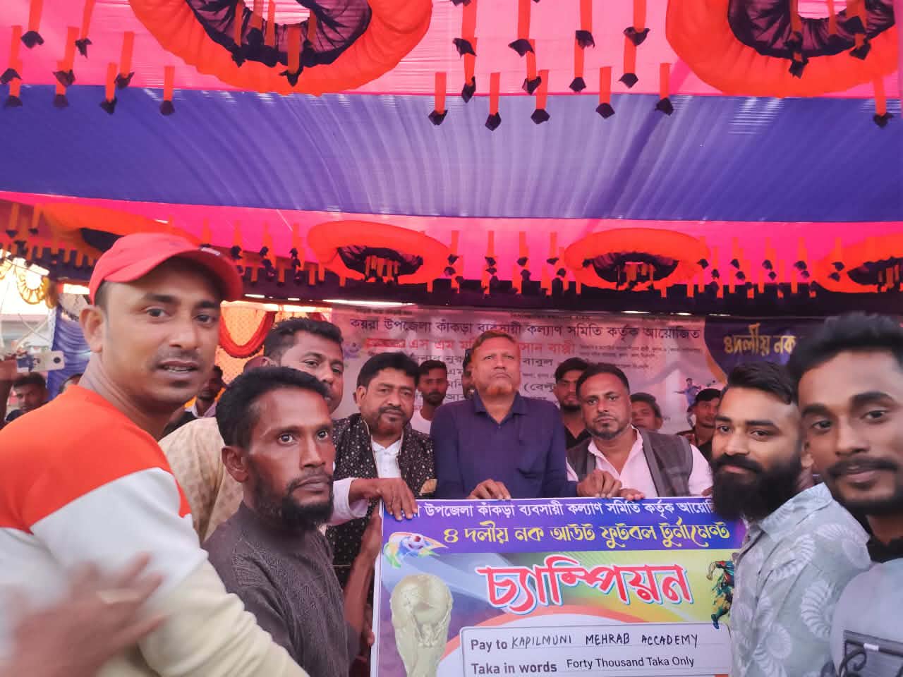 খেলায় কয়রা বাজার মিনিষ্টার শো রুম ও কপিলমুনি ফুটবল একাদশের মধ্যকর ম্যাচে টাইব্রেকারের মাধ্যমে ৫-৩ গোলে কপিলমুনি ফুটবল একাদশ চ্যম্পিয়ন হওয়ার গৌরব অর্জন করেন।