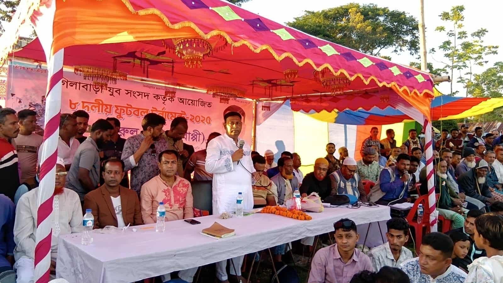 সারাফাত ইসলাম কয়রা প্রতিনিধিঃ খুলনা কয়রায় ৮ দলীয় ফুটবল টুর্নামেন্টের ফাইনাল খেলা অনুষ্ঠিত হয়েছে। বুধবার বিকাল চারটায় গিলাবাড়ি যুব সংসদের আয়োজনে গিলাবাড়ি হাই স্কুল মাঠে অনুষ্ঠিত হয়। ফাইনাল খেলায় মহেশ্বরীপুর 5 স্টার ক্লাব বনাম ভান্ডারপোল ইউনাইটেড ক্লাব অংশগ্রহণ করে। ফাইনালে মহেশ্বরীপুর 5 স্টার ৫-৪ গোলে ভান্ডারপোল ইউনাইটেড ক্লাবকে পরাজিত করে চ্যাম্পিয়ন অর্জন করে। এসময় স্থানীয় সমাজ সেবক লুৎফর রহমান সরদারের সভাপতিত্বে প্রধান অতিথি হিসেবে উপস্থিত ছিলেন খুলনা ৬ (কয়রা - পাইকগাছা) আসনের বিএনপির মনোনিত এমপি প্রার্থী মোঃ মনিরুল হাসান বাপ্পি, উপস্থিত ছিলেন, জেলা বিএনপির সদস্য এম,এ হাসান, মোঃ মনিরুজ্জামান, আবু সাইদ বিশ্বাস, বিএনপি নেতা মোঃ কোহিনুর ইসলাম, এফ,এম মনিরুজ্জামান, মোঃ রফিকুল ইসলাম, নাজমুল হুদা যুবদলের যুগ্ন আহবায়ক মোঃ আছাদুল ইসলাম, যুবনেতা মোঃ আবু তৈয়ব কৃষকদলের আহবায়ক মোঃ গোলাম রসুল প্রমুখ