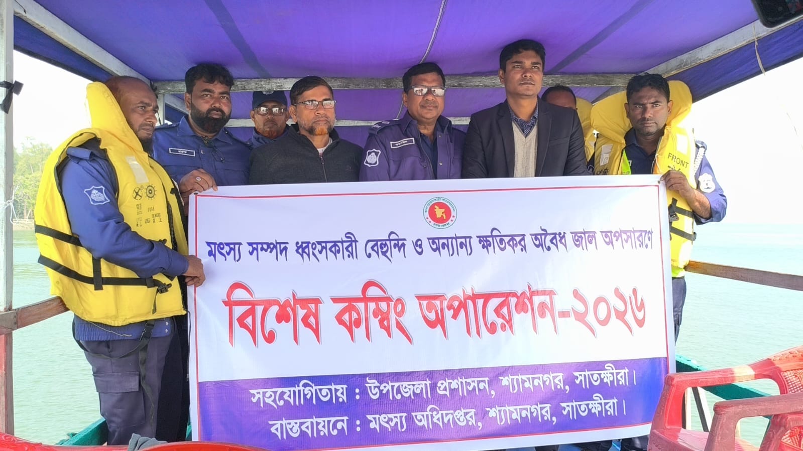 অভিযানের নেতৃত্ব দিচ্ছেন শ্যামনগর উপজেলা সিনিয়র মৎস্য কর্মকর্তা তৌহিদ হাসান।