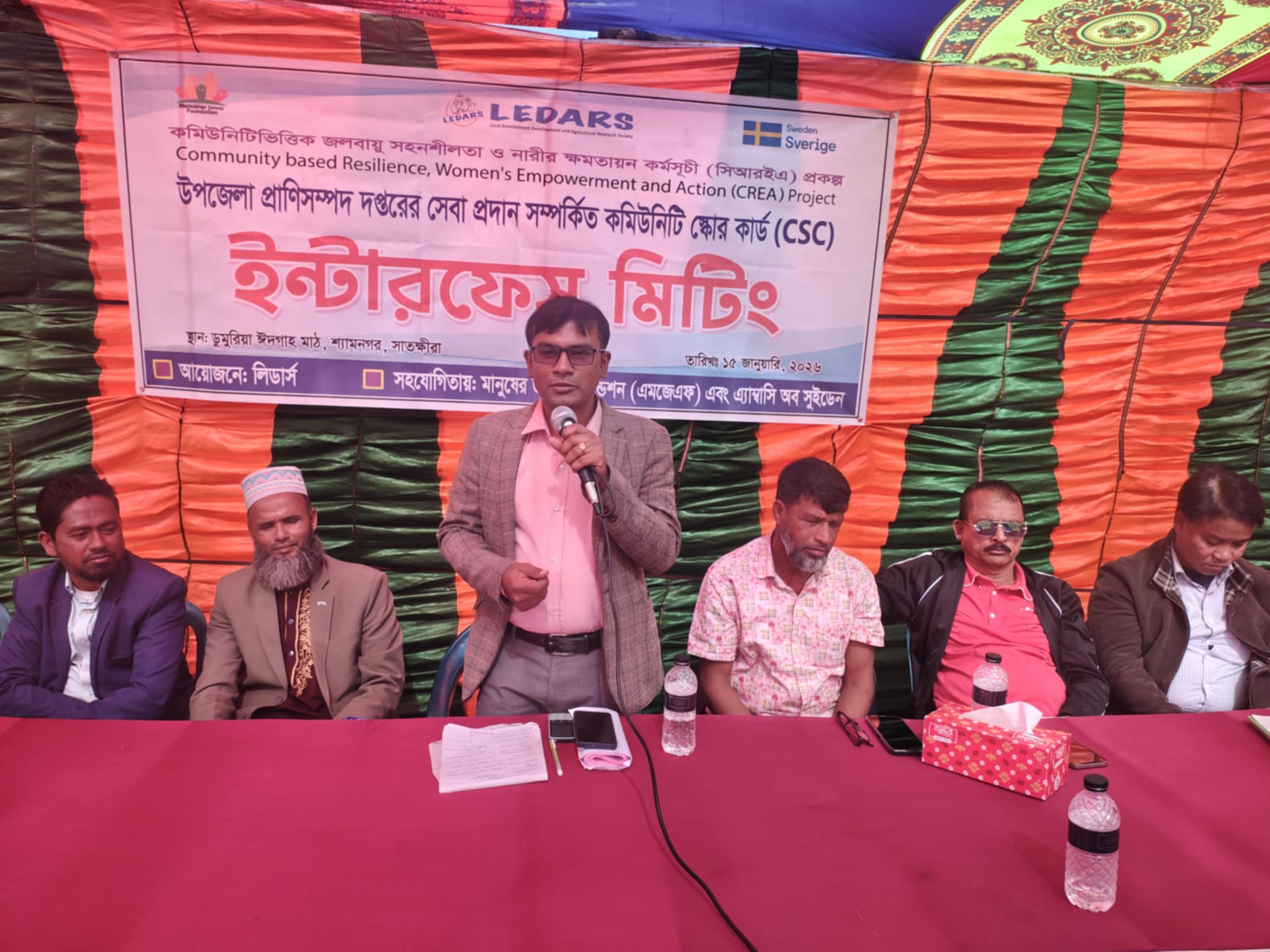 লিডার্স এর আয়োজনে মানুষের জন্য ফাউন্ডেশন ও এ্যাম্বাসি অব সুইডেনের সহযোগিতায় কমিউনিটি ভিত্তিক জলবায়ু সহনশীলতা ও নারীর ক্ষমতায়ন কর্মসূচি (সিআরইএ) প্রকল্পের আওতায় ডুমুরিয়া ঈদগাহ মাঠে বৃহস্পতিবার (১৫ জানুয়ারি ২০২৬) ইন্টারফেস মিটিং আয়োজন করা হয়। ইন্টারফেস মিটিং এ সভাপতিত্ব করেন, গাবুরা ইউনিয়ন পরিষদের ১নং ওয়ার্ডের ইউপি সদস্য হাবিবুল্লাহ বাহার। প্রধান অতিথি হিসাবে উপস্থিত ছিলেন, ভেটেরিনারী সার্জন ও শ্যামনগর উপজেলা প্রাণিসম্পদ কর্মকর্তা ( ভারপ্রাপ্ত) সুব্রত কুমার বিশ্বাস। এ সময় আরো উপস্থিত ছিলেন, গাবুরা ইউনিয়ন কৃত্রিম প্রজনন কর্মী এ আই টি রবিউল ইসলাম ,ভ্যাকসিনেটর শাহানুর আলম , গাবুরা ইউনিয়ন পরিষদের ৯নং ওয়ার্ডের ইউপি সদস্য মঞ্জুরুল আলম, মোঃ বায়েজিদ আলম, ইমাম ডুমুরিয়া শেখবাড়ী জামে মসজিদ ও উপকূলীয় প্রেসক্লাবের (সাধারণ সম্পাদক) আল-হুদা মালী, গাবুরা ইউনিয়ন ক্লাইমেট এ্যাকশান গ্রুপের সদস্যবৃন্দ , সিআরইএ প্রকল্পের প্রকল্প সমন্বয়কারী সুব্রত অধিকারী, ফিল্ড ফ্যাসিলিটেটর কে এম আক্তার হোসেন ও স্থানীয় জনপ্রতিনিধি ও সুশীল সমাজের প্রতিনিধিরা। অনুষ্ঠানের শুরুতে শুভেচ্ছা বক্তব্য রাখেন সিআরইএ প্রকল্পের প্রকল্প সমন্বয়কারী সুব্রত অধিকারী ।