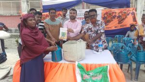 গাবুরায় ২০০ জন নারী-পুরুষকে লবণ সহনশীল বীজ, জৈব সার, জিও ব্যাগ ও পানির ঝাঁঝরি বিতরণ