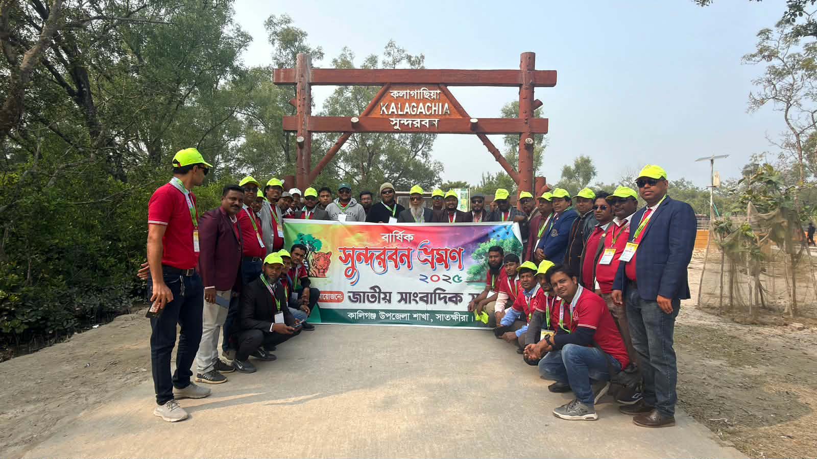 জাতীয় সাংবাদিক সংস্থা সাতক্ষীরার কালিগঞ্জ উপজেলা শাখার উদ্যোগে আনন্দঘন পরিবেশে বার্ষিক বনভোজন ও বিশ্ব ঐতিহ্য সুন্দরবন ভ্রমণ অনুষ্ঠিত হয়েছে। শনিবার (০৩ জানুয়ারি-২৬) দিনব্যাপী নানা আয়োজনের মধ্যদিয়ে সন্ধি এ ভ্রমণ কর্মসূচি সম্পন্ন হয়।সকালে কালিগঞ্জ প্রেসক্লাবের সামনে থেকে মোটরসাইকেল শোভাযাত্রাসহ ভ্রমণদল সুন্দরবনের উদ্দেশ্যে যাত্রা শুরু করে। বনভোজন ও সুন্দরবন ভ্রমণের আনুষ্ঠানিক উদ্বোধন করেন কালিগঞ্জ সার্কেলের অতিরিক্ত পুলিশ সুপার মো. রাজিব। অনুষ্ঠানে শুভেচ্ছা বক্তব্য রাখেন জাতীয় সাংবাদিক সংস্থার কেন্দ্রীয় কমিটির মহাসচিব মো. আলমগীর গনি এবং জাতীয় সাংবাদিক সংস্থা কালিগঞ্জ শাখার উপদেষ্টা ও কালিগঞ্জ প্রেসক্লাবের সভাপতি শেখ সাইফুল বারী সফু। জাতীয় সাংবাদিক সংস্থা কালিগঞ্জ শাখার সভাপতি এম. হাফিজুর রহমান শিমুলের সঞ্চালনায় অনুষ্ঠানে আরও উপস্থিত ছিলেন জাতীয় সাংবাদিক সংস্থার কেন্দ্রীয় নীতি নির্ধারক পরিষদের সদস্য সচিব মো. মনজুর হোসেন, প্রচার ও প্রকাশনা সচিব মো. জাফরুল্লাহ, অর্থ সচিব মোহাম্মদ সানবির হোসেন, আন্তর্জাতিক বিষয়ক সচিব মোহাম্মদ মহসিন উদ্দিন। কালিগঞ্জ উপজেলা দুর্নীতি প্রতিরোধ কমিটির সভাপতি মোস্তফা আক্তারুজ্জামান পল্টু, কালিগঞ্জ প্রেসক্লাবের সাধারণ সম্পাদক সুকুমার দাশ বাচ্চু, উপদেষ্টা এ্যাডভোকেট জাফরুল্লাহ ইব্রাহিম, জাতীয় সাংবাদিক সংস্থা কালিগঞ্জ শাখার সাধারণ সম্পাদক শেখ নাজমুল হোসেন, সাংগঠনিক সম্পাদক শেখ আতিকুর রহমান ও উপকূল প্রেসক্লাবের সভাপতি আব্দুল হালিমসহ সংগঠনের অন্যান্য সদস্যবৃন্দ। ভ্রমণদলটি শ্যামনগরের নীলডুমুর বুড়িগোয়ালিনী পৌঁছে ট্রলারযোগে কলাগাছিয়া ইকো টুরিজম সেন্টার পরিদর্শন করেন। সেখানে প্রাকৃতিক সৌন্দর্য উপভোগ, ঘোরাঘুরি ও সম্মিলিত খাওয়া-দাওয়ার মধ্য দিয়ে বনভোজনটি এক প্রাণবন্ত মিলন মেলায় পরিণত হয়।ট্রলারে সংগীত পরিবেশন করেন সংগীত শিল্পী আব্দুল আজিজ, রফিকুল ইসলাম রফিক, জাহাঙ্গীর আলমসহ অন্যান্য শিল্পীরা। এ সময় সদস্যদের ফটোসেশন, ভিডিও ধারণ, সাংস্কৃতিক পর্ব, গল্প ও কৌতুকপূর্ণ আড্ডায় পুরো আয়োজনটি আরও প্রাণবন্ত হয়ে ওঠে।