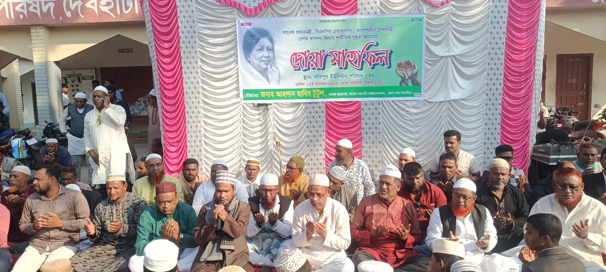 বিএনপির চেয়ারপারসন ও তিনবারের সাবেক প্রধানমন্ত্রী বেগম খালেদা জিয়ার শারীরিক সুস্থতা কামনায় সাতক্ষীরার দেবহাটা উপজেলার সখিপুর ইউনিয়নে দোয়া মাহফিল ও আলোচনা সভা অনুষ্ঠিত হয়েছে। শনিবার (১৩ ডিসেম্বর) বাদ যোহর সখিপুর ইউনিয়ন বিএনপি ও এর অঙ্গ-সহযোগী সংগঠনসমূহের আয়োজনে এবং সাতক্ষীরা জেলা স্বেচ্ছাসেবক দলের সাবেক সভাপতি আহসান হাবিব টুটুলের সহযোগিতায় এ কর্মসূচি পালিত হয়। দোয়া মাহফিল ও আলোচনা সভায় সভাপতিত্ব করেন সখিপুর ইউনিয়ন বিএনপির সভাপতি এবাদুল ইসলাম। অনুষ্ঠানে প্রধান অতিথি হিসেবে বক্তব্য রাখেন সাতক্ষীরা জেলা স্বেচ্ছাসেবক দলের সাবেক সভাপতি আহসান হাবিব টুটুল। দেবহাটা উপজেলা স্বেচ্ছাসেবক দলের সিনিয়র যুগ্ম আহ্বায়ক আহম্মদ আলী এবং সখিপুর ইউনিয়ন বিএনপি নেতা শাহিন আলমের যৌথ সঞ্চালনায় সভায় আরও বক্তব্য দেন জেলা স্বেচ্ছাসেবক দলের সাবেক সিনিয়র সহ-সভাপতি রুহুল কুদ্দুস, সাংগঠনিক সম্পাদক মাসুদ মোস্তফা সোহেল, দেবহাটা উপজেলা স্বেচ্ছাসেবক দল ও উপজেলা ছাত্রদলের সাবেক সভাপতি শহিদুল ইসলাম, সাবেক উপজেলা যুবদলের সাধারণ সম্পাদক আব্দুল হাবিব মন্টু, উপজেলা বিএনপির সাবেক যুগ্ম আহ্বায়ক মোখলেছুর রহমান মুকুল, সাবেক কোষাধ্যক্ষ ও সাবেক চেয়ারম্যান রেজাউল করিম, সাবেক যুগ্ম আহ্বায়ক জাকির হোসেন, দেবহাটা কলেজের সাবেক ভারপ্রাপ্ত অধ্যক্ষ ও বিএনপি নেতা হাফিজুর রহমানসহ স্থানীয় ও জেলা পর্যায়ের নেতৃবৃন্দ।