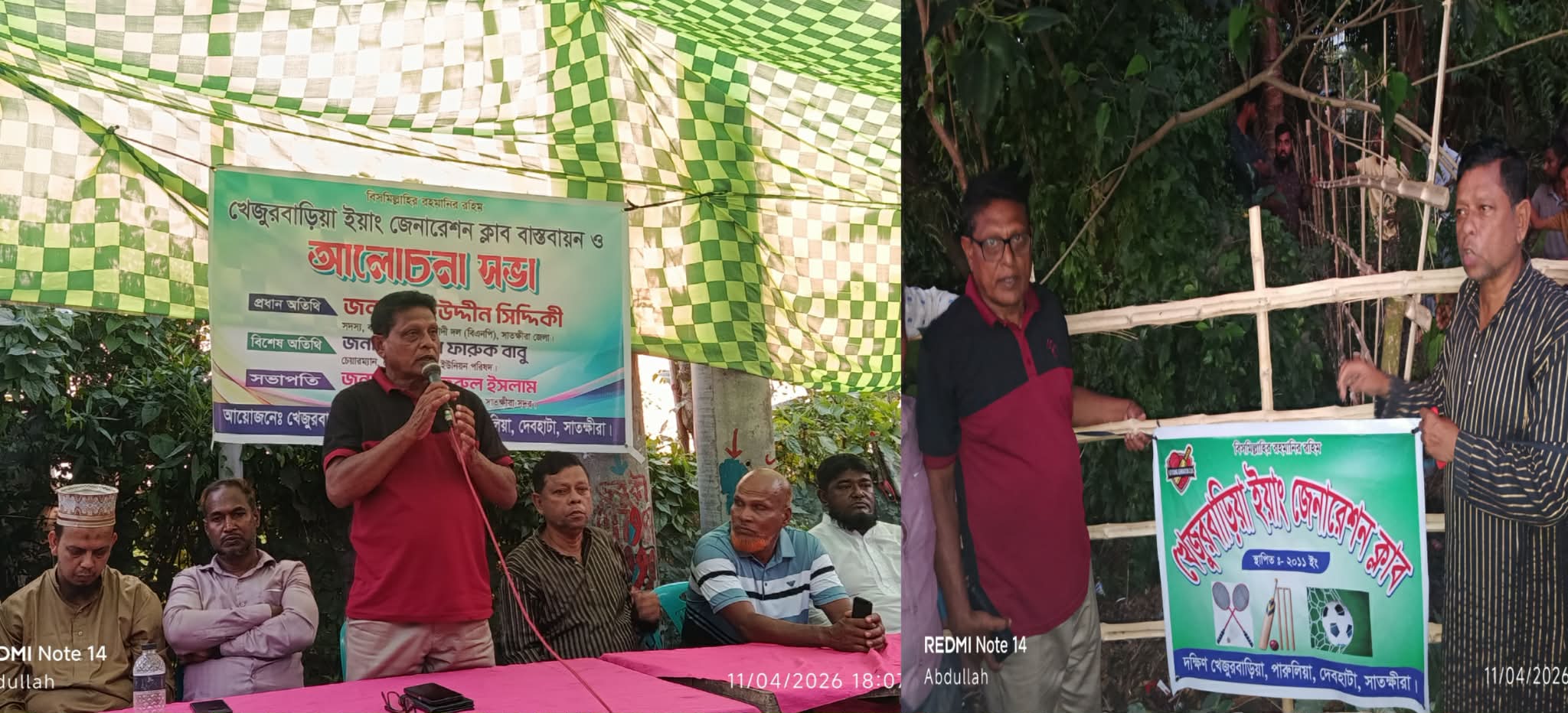 দেবহাটা উপজেলা পারুলিয়া ইউনিয়নের খেজুরবাড়িয়া গ্রামে,খেজুরবাড়িয়া ইয়াং জেনারেশন ক্লাবের বাস্তবায়ন ও জায়গা নির্ধারণের জন্য ১১ এপ্রিল (শুক্রবার) বিকাল চারটায় এক আলোচনা সভা অনুষ্ঠিত হয়। এই সময় ক্লাবের সভাপতি এটিও জহিরুল ইসলামের সভাপতিত্বে ও ক্লাবের সাধারণ সম্পাদক সাগর হোসেনর সঞ্চালনায় প্রধান অথিতি ছিসেবে উপস্থিত ছিলেন দেবহাটা উপজেলা বিএনপির সাবেক সদস্য সচিব ও সাতক্ষীরা বিএনপির সদস্য মহিউদ্দিন সিদ্দিকী, বিশেষ অতিথি হিসেবে উপস্থিত ছিলেন সাতক্ষীরা জেলা ক্রীয়া দলের আহবায়ক ও দেবহাটা উপজেলা বিএনপির সাবেক সাধারণ সম্পাদক পারুলিয়া ইউনিয়নের চেয়ারম্যান গোলাম ফারুক বাবু, বিশিষ্ট সমাজ সেবক আবুল হোসেন, দেবহাটা উপজেলা শ্রমীক দলের সাধারণ সম্পাদক আবু সাইদ, দেবহাটা রিপোর্টার্স ক্লাবের সাধারণ সম্পাদক আব্দুল্লাহ আল মামুন, ইউপি সদস্য নবাব আলী,বিএনপির ওয়ার্ড সভাপতি শফিকুল ইসলাম সফি,বিএনপি নেতা হাবিব হোসেন, মিজানুর রহমান মিনি,ইউনিয়ন শ্রমীকদলের সভাপতি আমজাত হোসেন, জামাতের ওয়ার্ডের নেতা রবিউল ইসলাম, ক্লাবের সদস্য, আনিছুর রহমান, জামসেদ আলম, শিরিন হোসেন, ইবাদুল ইসলাম,আকাশ হোসেন প্রমুখ।এই সময় উপস্থিত থেকে অতিথিরা বলেন এই ক্লাব তৈরি হলে গ্রামের অনেক উন্নয়ন মূলক কাজ হবে, বর্তমান সময়ে যুবকেরা নেশা, জুয়া বিভিন্ন অপরাধ মূলক কাজে জড়িয়ে যাচ্ছে একটি ক্লাব হলে তারা এই সময় কাজ থেকে বিরত থাকবে। গ্রামের মানুষের সুখে দুঃখে এই যুবকদের পাশে পাওয়া যাবে।