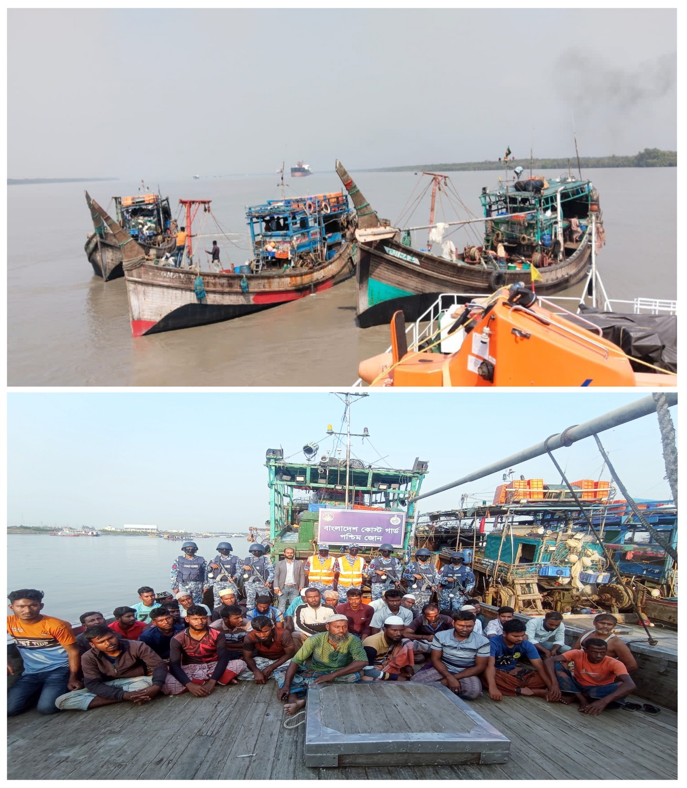 বঙ্গোপসাগরে কোস্ট গার্ডের অভিযানে ৩ টি অবৈধ আর্টিসানাল ট্রলিং বোট, ট্রলিং জাল ও বিপুল পরিমাণ সামুদ্রিক মাছসহ ৩৭ জেলেকে আটক করেছে,