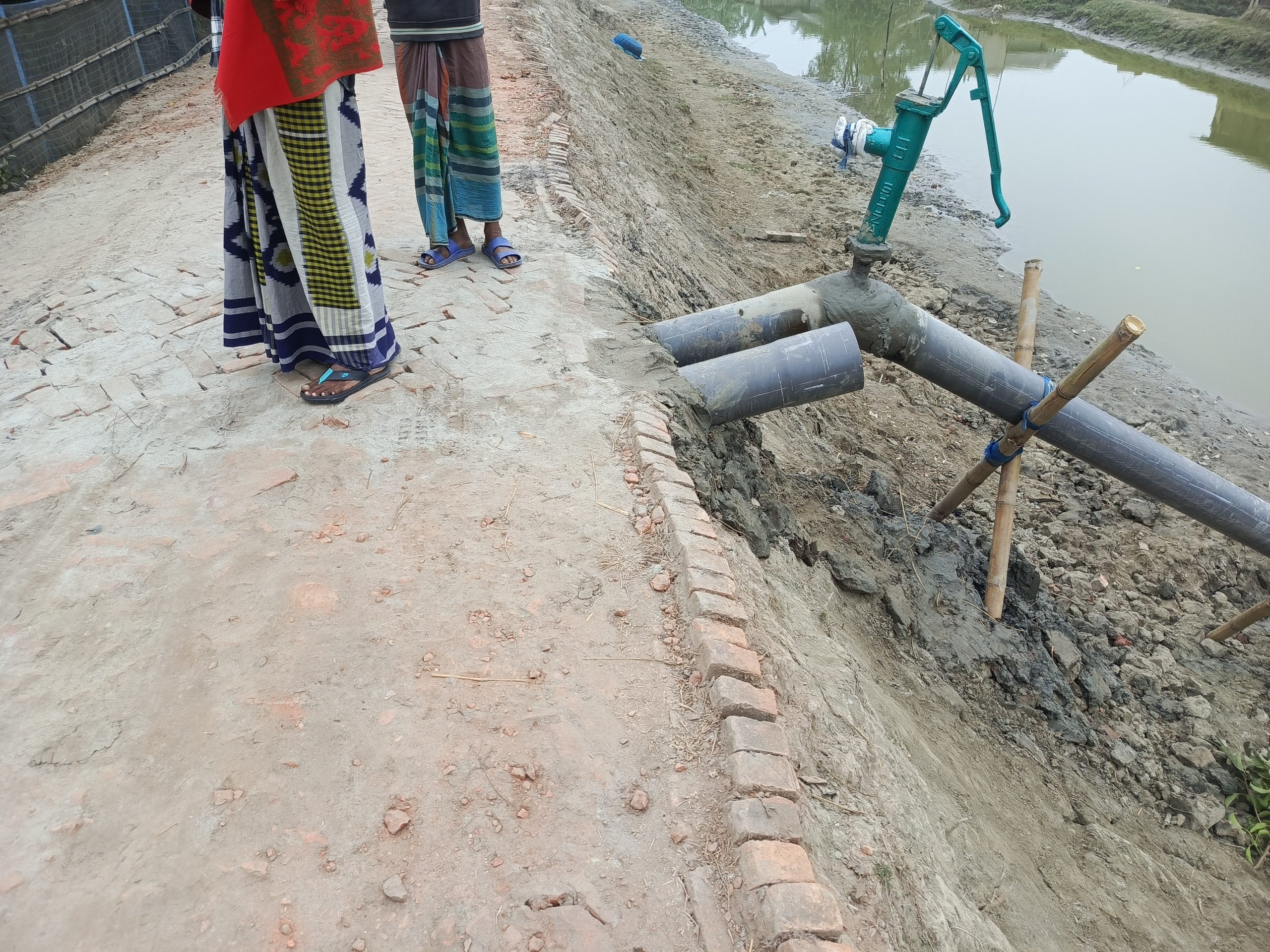 শ্যামনগরের বুড়িগোয়ালিনীতে চুনা নদীর বেড়িবাঁধ কেটে অবৈধ পাইপ বসানোর অভিযোগ