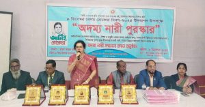 নারীর ক্ষমতায়ন, অধিকার ও নিরাপত্তা নিশ্চিত করার অঙ্গীকার নিয়ে বেগম রোকেয়া দিবস উপলক্ষে সাতক্ষীরার কালিগঞ্জ উপজেলা অফিসার্স ক্লাবে উৎসবমুখর পরিবেশে অনুষ্ঠিত হয়েছে ‘শ্রেষ্ঠ অদম্য নারী সম্মাননা ২০২৫ প্রদান অনুষ্ঠান। মঙ্গলবার (৯ ডিসেম্বর) নারী ও কন্যার প্রতি সহিংসতা বন্ধে ঐক্যবদ্ধ হই, জেন্ডার ভিত্তিক নিরাপত্তা নিশ্চিত করি এই প্রতিপাদ্যকে সামনে রেখে দিনব্যাপী বিভিন্ন কর্মসূচি পালন করা হয়। মহিলা বিষয়ক অধিদপ্তর ও মহিলা ও শিশু বিষয়ক মন্ত্রণালয়ের উদ্যোগে এবং কালিগঞ্জ উপজেলা প্রশাসনের আয়োজনে সকাল ১০টায় উপজেলা নির্বাহী কর্মকর্তার কার্যালয় চত্বর থেকে র্যালি বের হয়ে শহরের প্রধান সড়ক প্রদক্ষিণ করে। পরে সকাল সাড়ে ১০টায় উপজেলা অফিসার্স ক্লাবে আলোচনা সভা ও সম্মাননা প্রদানের আয়োজন করা হয়। উপজেলা মহিলা বিষয়ক কর্মকর্তা অর্ণা চক্রবর্তীর সভাপতিত্বে উপজেলা দেয়া কিশোর কিশোরী ক্লাবের সভাপতি মাসুম বিল্লাহ এর সঞ্চালনায় অনুষ্ঠানে সম্মানিত অতিথি হিসেবে বক্তব্য রাখেন উপজেলা সমাজসেবা কর্মকর্তা এসএম আকরাম হোসেন, প্রেসক্লাব কালিগঞ্জের সভাপতি শেখ সাইফুল বারী সফু, সাংবাদিক সমিতির সভাপতি শেখ আনোয়ার হোসেন, কালিগঞ্জ পাইলট গার্লস স্কুলের সহকারী শিক্ষিকা কনিকা সরকার, জলবায়ু কর্মী ও রূপান্তরের সাধারণ সম্পাদক মারুফ হাসান প্রমুখ। বক্তারা বলেন, বেগম রোকেয়ার দর্শন ও আন্দোলন বাংলাদেশে নারী জাগরণের মাইলফলক। নারীর মর্যাদা, অধিকার ও নিরাপত্তা নিশ্চিত করতে সমাজের প্রতিটি স্তরে যৌথভাবে কাজ করার আহ্বান জানান তারা। আমিই রোকেয়া এই শ্লোগানকে বক্তারা নারীর আত্মবিশ্বাস ও এগিয়ে যাওয়ার প্রতীক হিসেবে তুলে ধরেন।এ সময় শ্রেষ্ঠ অদম্য নারী সম্মাননা২০২৫ প্রাপ্তদের পাঁচজন নারীকে সম্মাননা প্রদান করা হয়।অর্থনৈতিক সাফল্য অর্জনকারী নারী উপজেলার বাথুয়াডাঙ্গা গ্রামের তুষার বিশ্বাসের স্ত্রী লক্ষ্মী রানী বিশ্বাস। থালনা গ্রামের শিক্ষা ও চাকরির ক্ষেত্রে সাফল্য অর্জনকারী নারী ব্রজন কুমার সরকারের স্ত্রী মিঠু মিস্ত্রি। মহৎপুর গ্রামের সফল জননী নারী ওবায়দুর রহমানের স্ত্রী জেবুনন্নেছা ওবায়দুর। কৃষ্ণনগরের নারী নির্যাতনের দুঃস্বপ্ন মুছে জীবন সংগ্রাম জয়ী নারী মৃত ফটিক মোল্লার কন্যা রঞ্জিতা আক্তার বেবি এবং বসন্তপুর গ্রামের সমাজ উন্নয়নের অসম্য অবদান রেখেছেন রওশন আলী স্ত্রী জাহানারা বেগম। সম্মাননা প্রাপ্তদের হাতে অতিথিরা ক্রেস্ট, সনদপত্র ও শুভেচ্ছা উপহার সামগ্রী তুলে দেন।দিনব্যাপী আয়োজনে ছিল নারী উন্নয়ন বিষয়ক প্রদর্শনী, আলোচনা সভা, সাংস্কৃতিক পরিবেশনা এবং কিশোর-কিশোরীদের অংশগ্রহণে বিভিন্ন কার্যক্রম। এতে সরকারি কর্মকর্তা, জনপ্রতিন